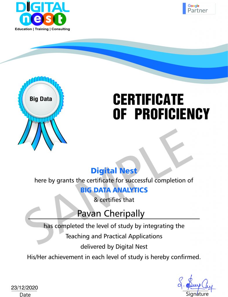 We are ready to cultivate skilled professionals to lead businesses at Digital Nest by providing best of best Big Data Analytics Training. Therefore, we commenced Big Data Analytics training for all the data lovers and data aspirants.