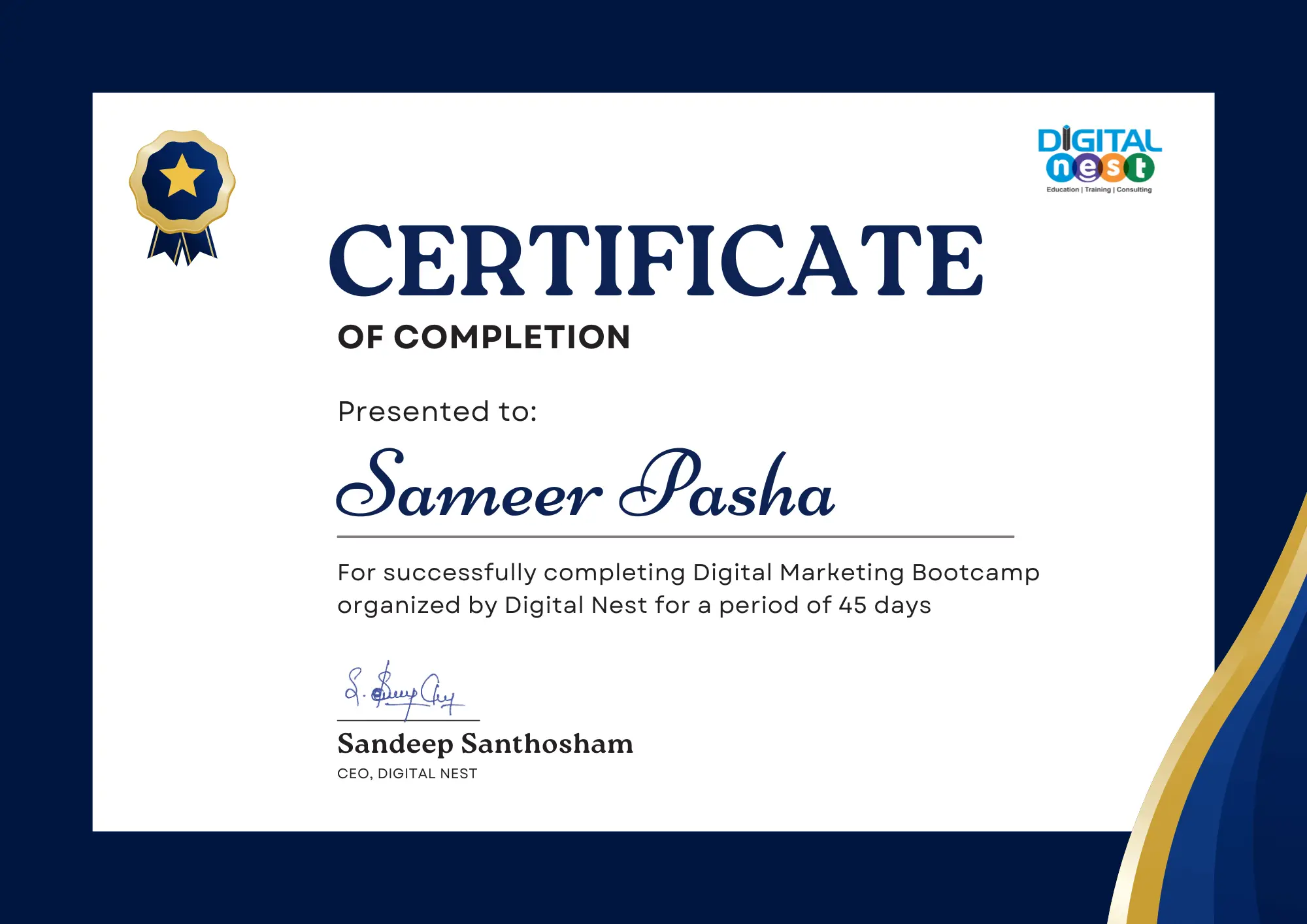 Signing up for the Digital marketing course was a big step for me. I wanted to take my career to the next level and the course offered by them has put me in a position to achieve that. The course offered by digital nest is very professionally executed and the Training is very thorough and on a one-to-one basis as well,